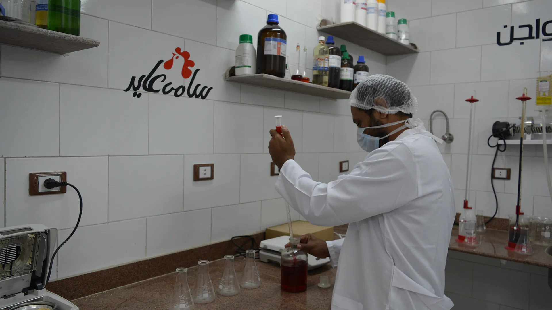 تحليل العناصر الغذائية للتاكد من جودة التصنيع ومتابقة المواصفات التغذوية للعلف